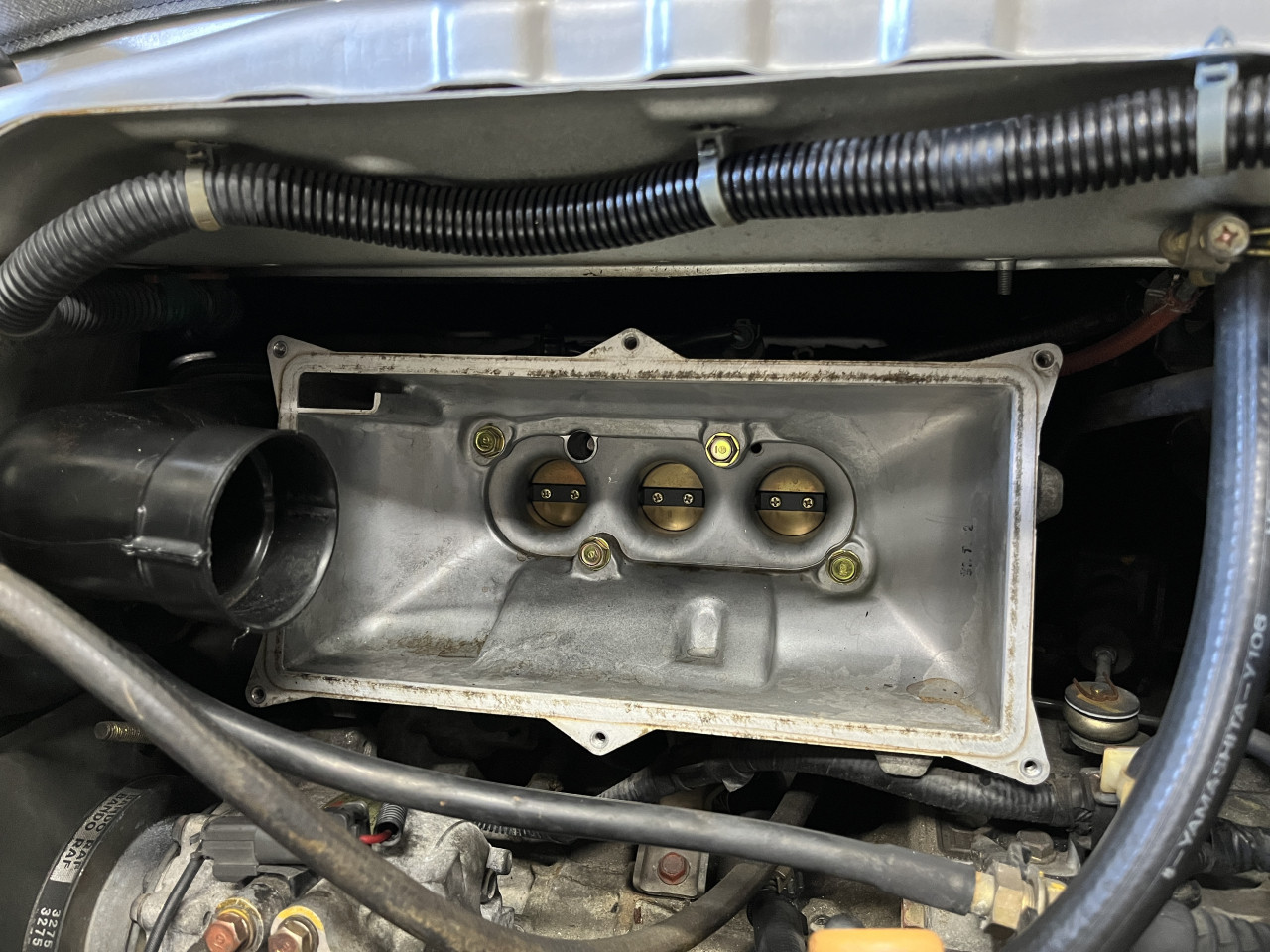 前回はエンジンルーム確認としてプラグ確認、点火時期調整、アイドリング回転数調整などの様子をご紹介致しましたが、今回は【ブローバイガス確認編】として、エンジンの健康状態を計り知る為の一要素であるブローバイガスの状態確認とエアクリーナーケース内の清掃、トランクルームの清掃を実施しましたので、その様子をご紹介致します。