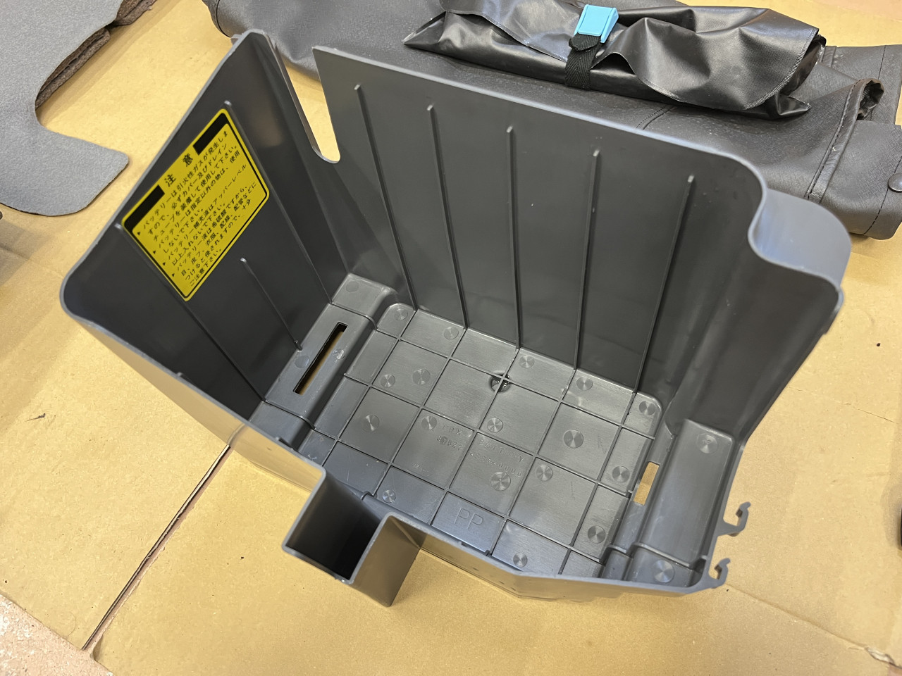そして、カバーとメンテナンスリッドを取り付けましたら、取り外してあるバッテリーケース、テールライトカバー、トランクマットにおいてもそれぞれ清掃を行い、、、