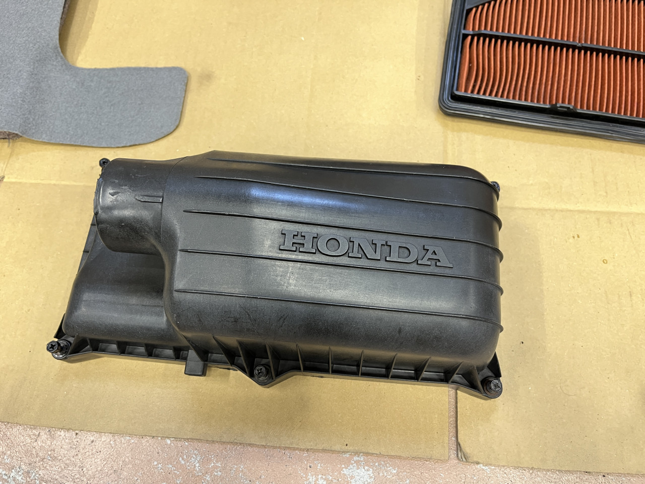 それぞれのパーツの取り付けを行い、最後にバッテリーを取り付けましたら、エアクリーナーケース内部におけるブローバイガスの状態確認及びトランクルーム内の清掃は完了となります。
