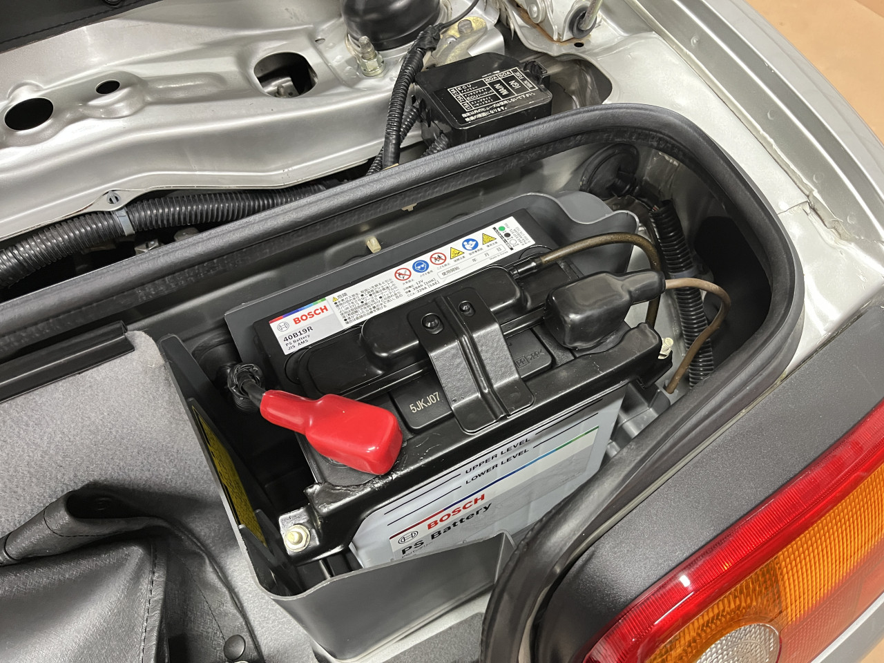 尚、今回使用するバッテリーはコストパフォーマンスに優れ、信頼性の高いBOSCH製バッテリーでサイズは40B19Rとなります。