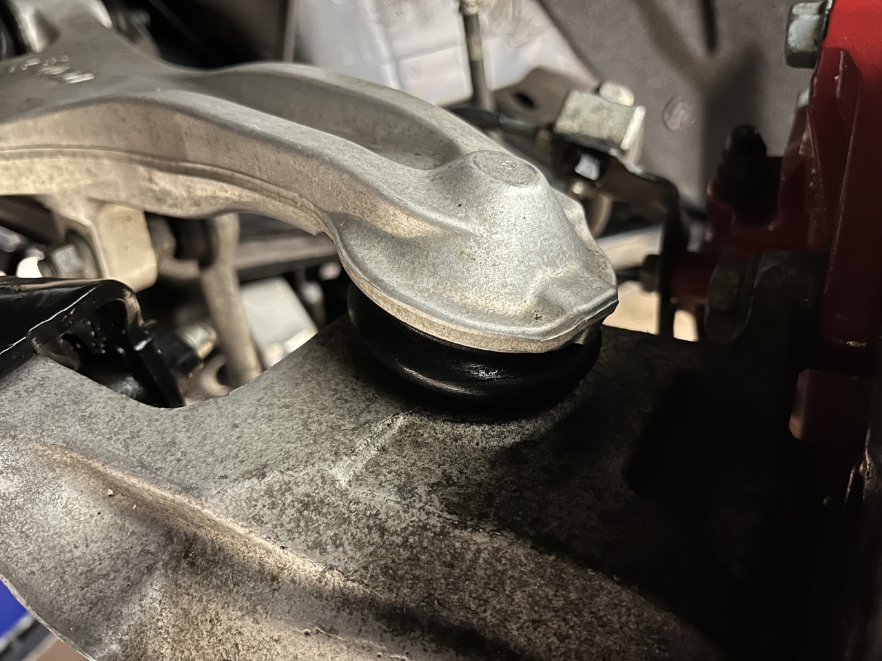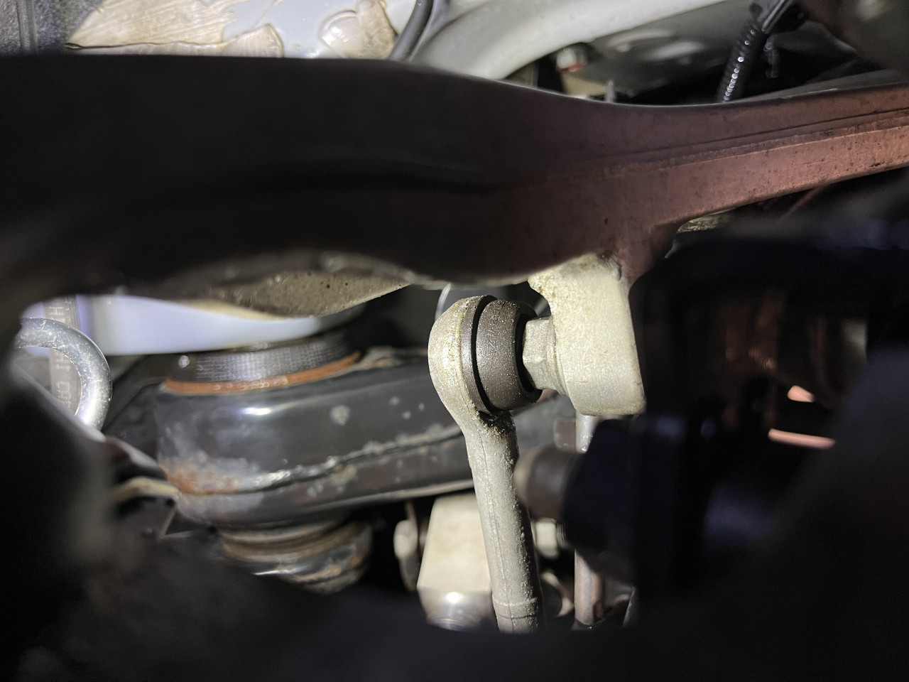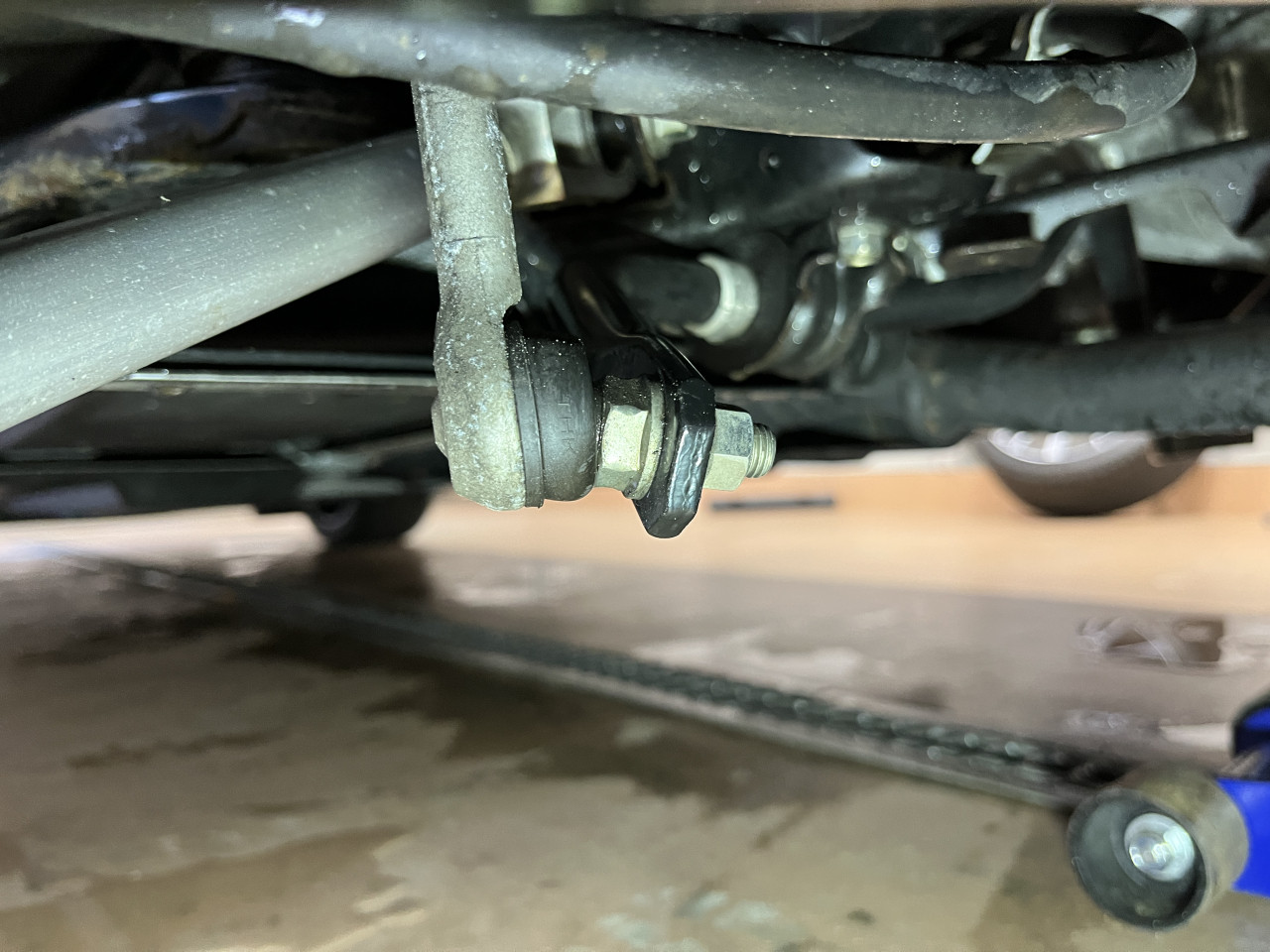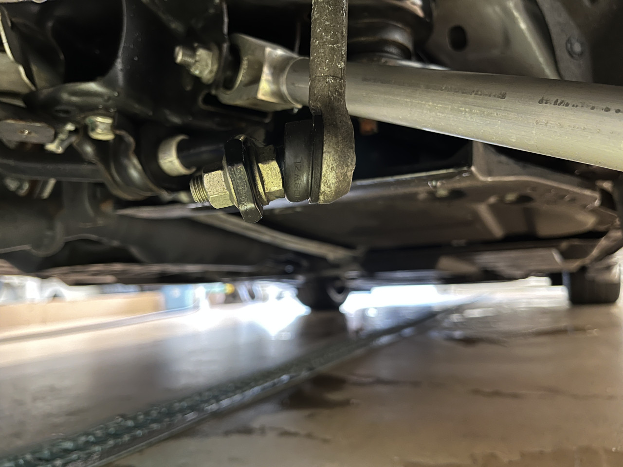 まずはサスペンションからのオイル漏れやアーム類に曲がりなどが無いか確認致しますが、共に問題無い状態であることが確認できました。