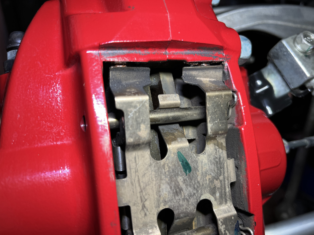 続いてブレーキパッドの確認ですが、残量は約7.0mmございますので、まだまだ当分はご使用頂ける状態です。