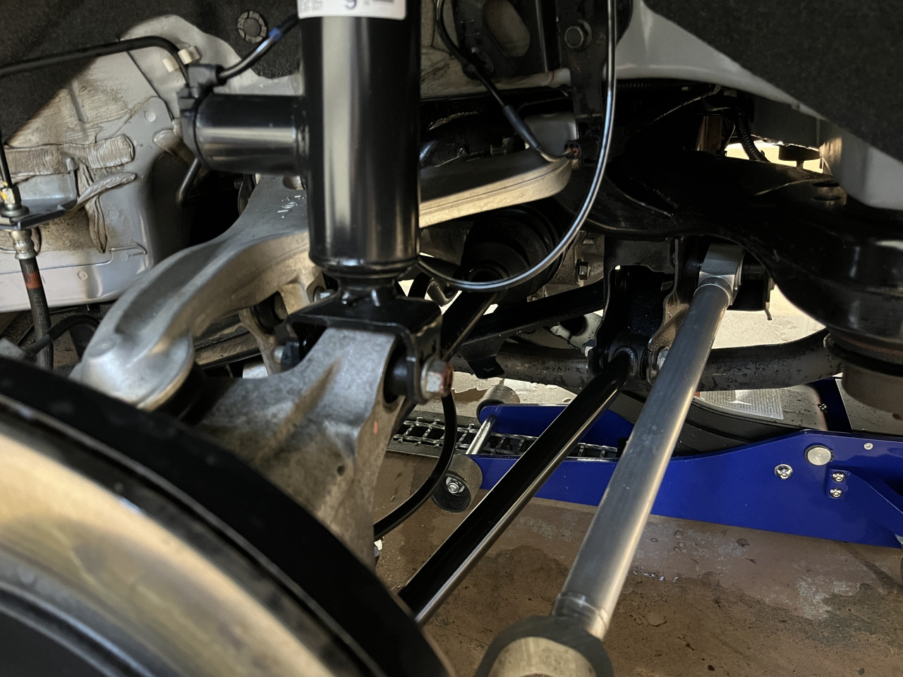 尚、リアダンパーも電子制御ダンパーが装備されており、リアサスペンションはマルチリンク形式ですが、リアもナックルやアッパーリンク類がアルミ鋳造品であることがわかります。