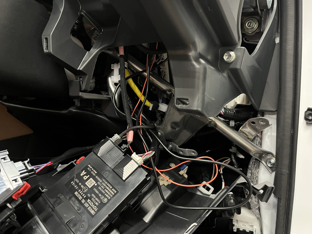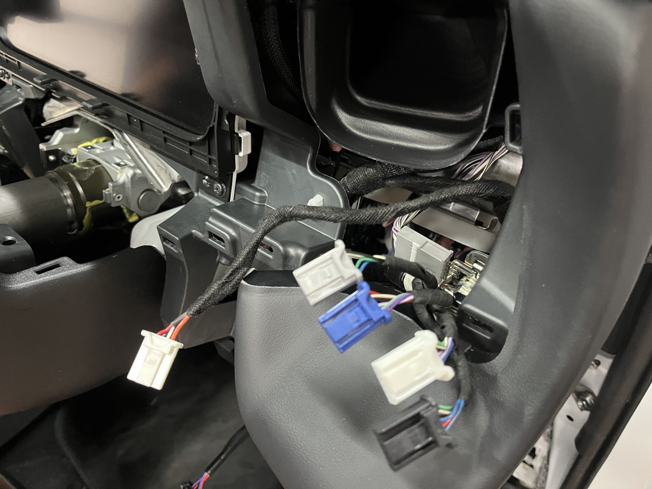 煩雑に配線がおいてある様な状態で、どうもインパネのスイッチパネルに取り付けられているTVキャンセラーON/OFFスイッチの配線の様です。