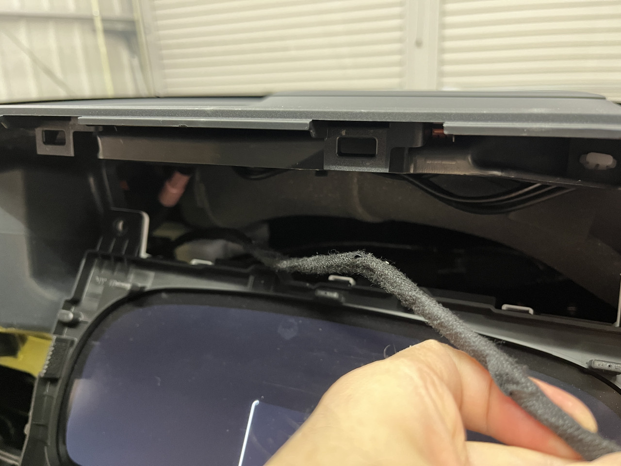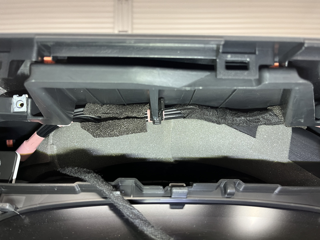 前回はセンターディスプレイ奥における作業をご紹介致しましたが、今回は第2回目その②として、メーターパネル奥及び運転席エアコン吹出口付近から発生していた異音対策の様子をご紹介致します。