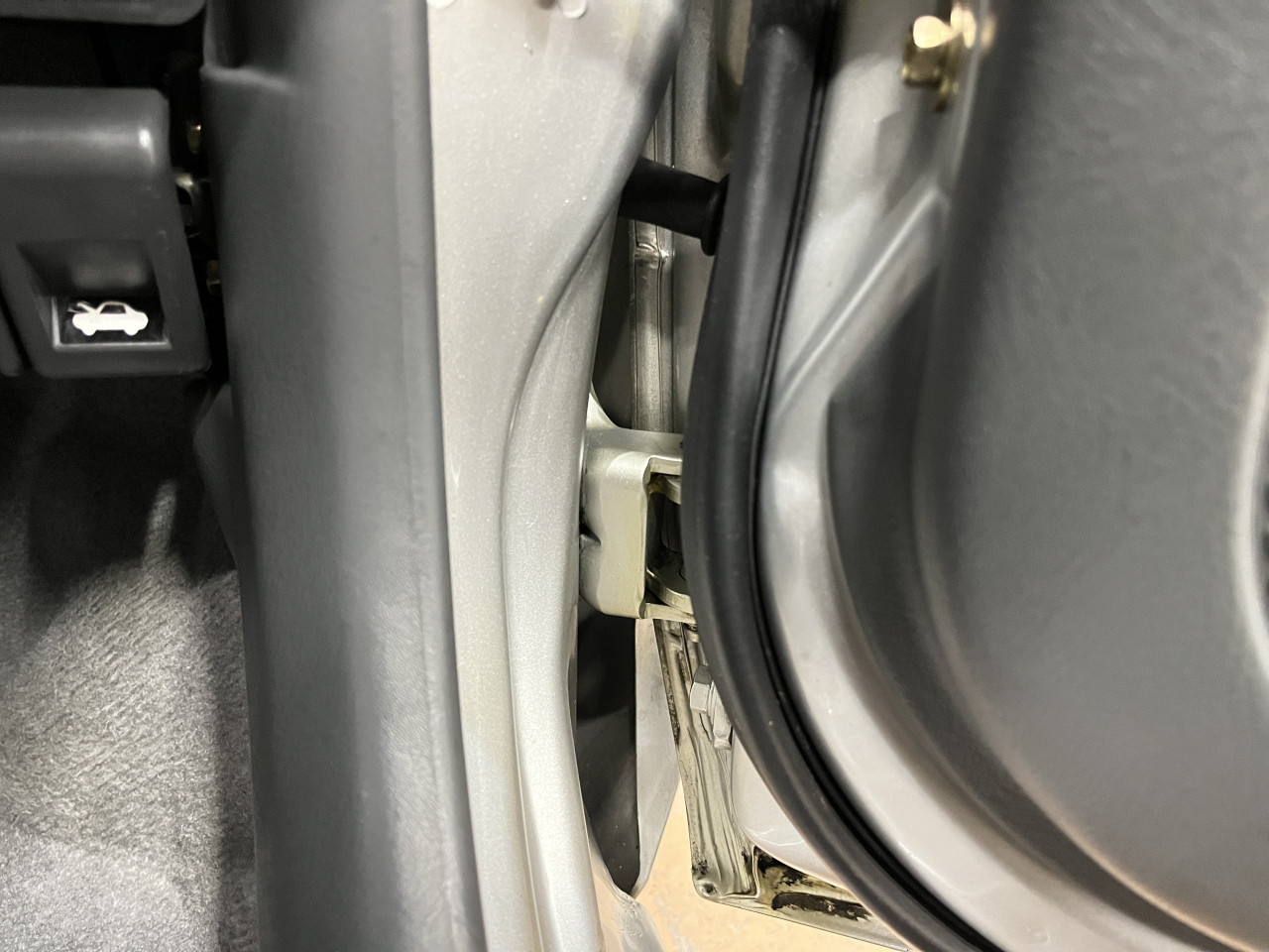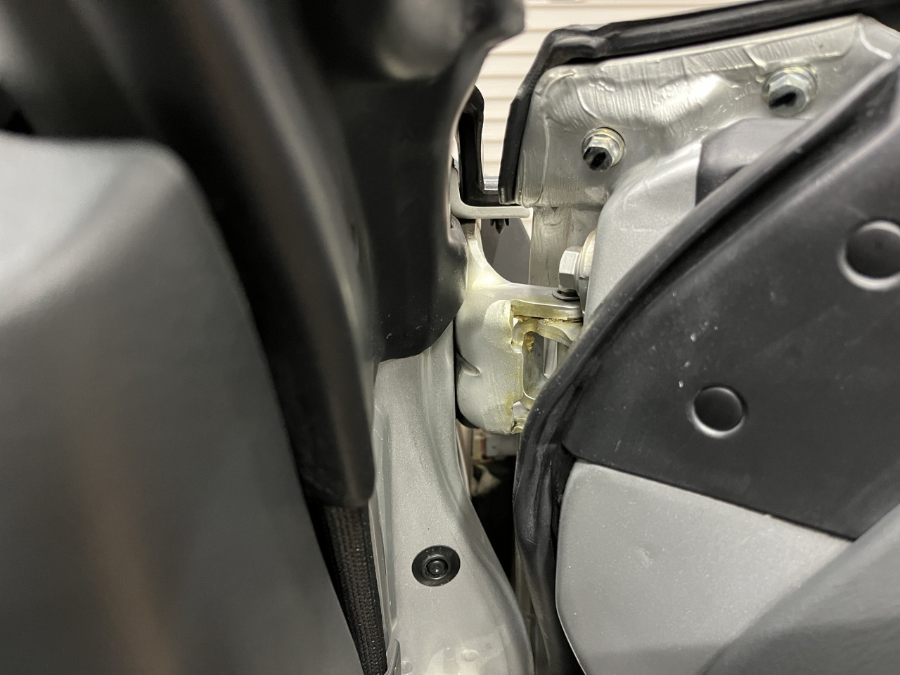 外板に続いては、ドアのヒンジ部を清掃と確認を行います。