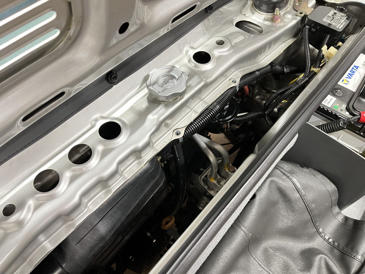 続いてはフロントボンネット内の状態確認と清掃を実施します。
