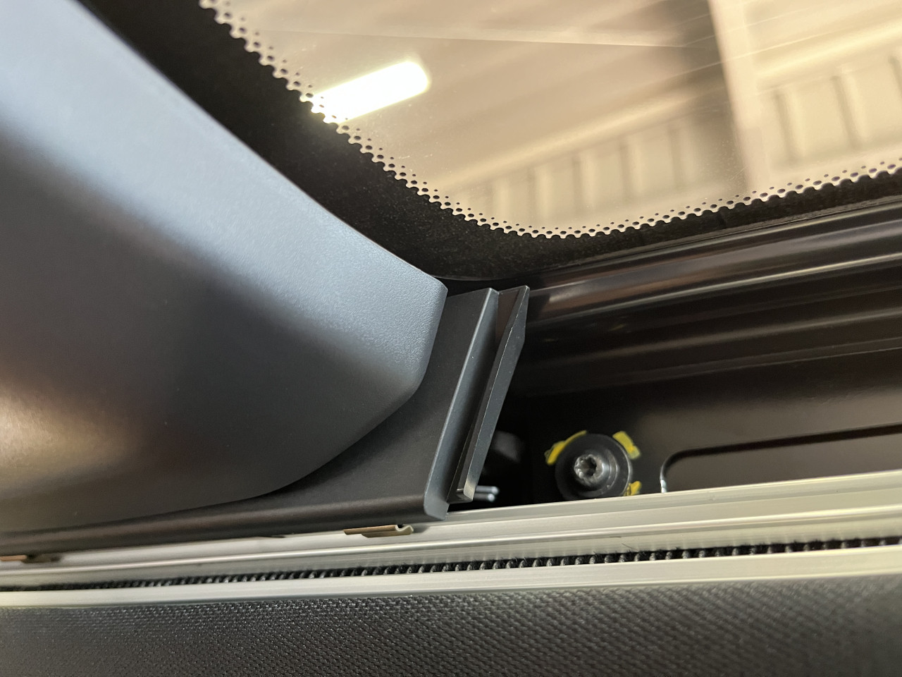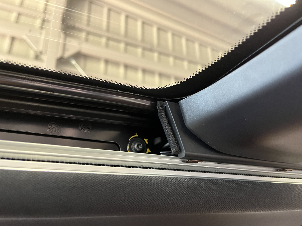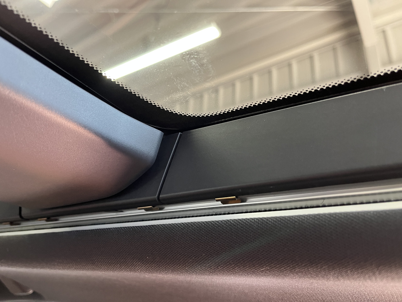 そこで、フロント側のサンルーフ周辺も確認致しましたところ、リア側と同じ様なトリムが両サイド取り付けられています。
