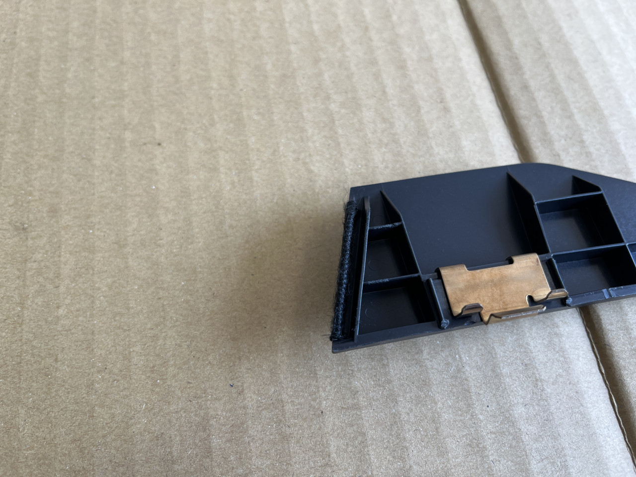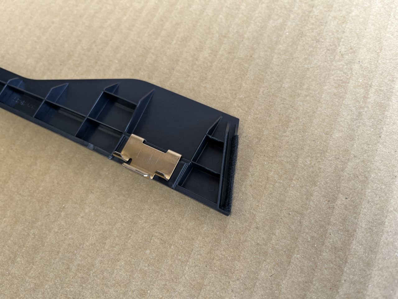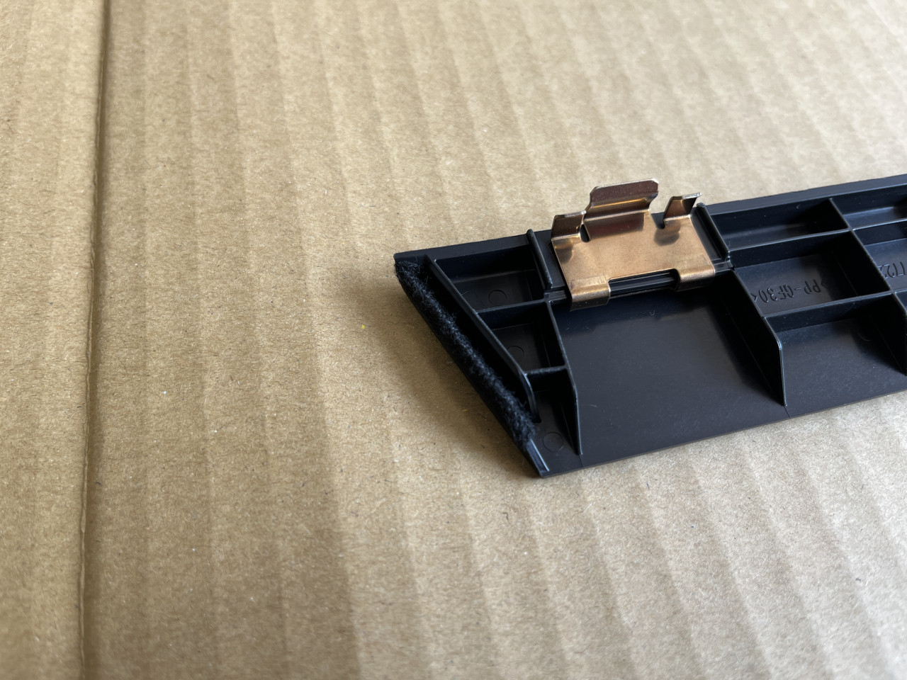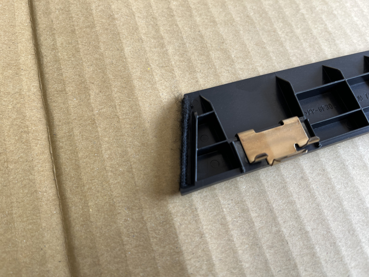対策としては、このトリムがセンターのトリムと接触する部分に不織布を貼り付けて接触しても音が出ない様にします。