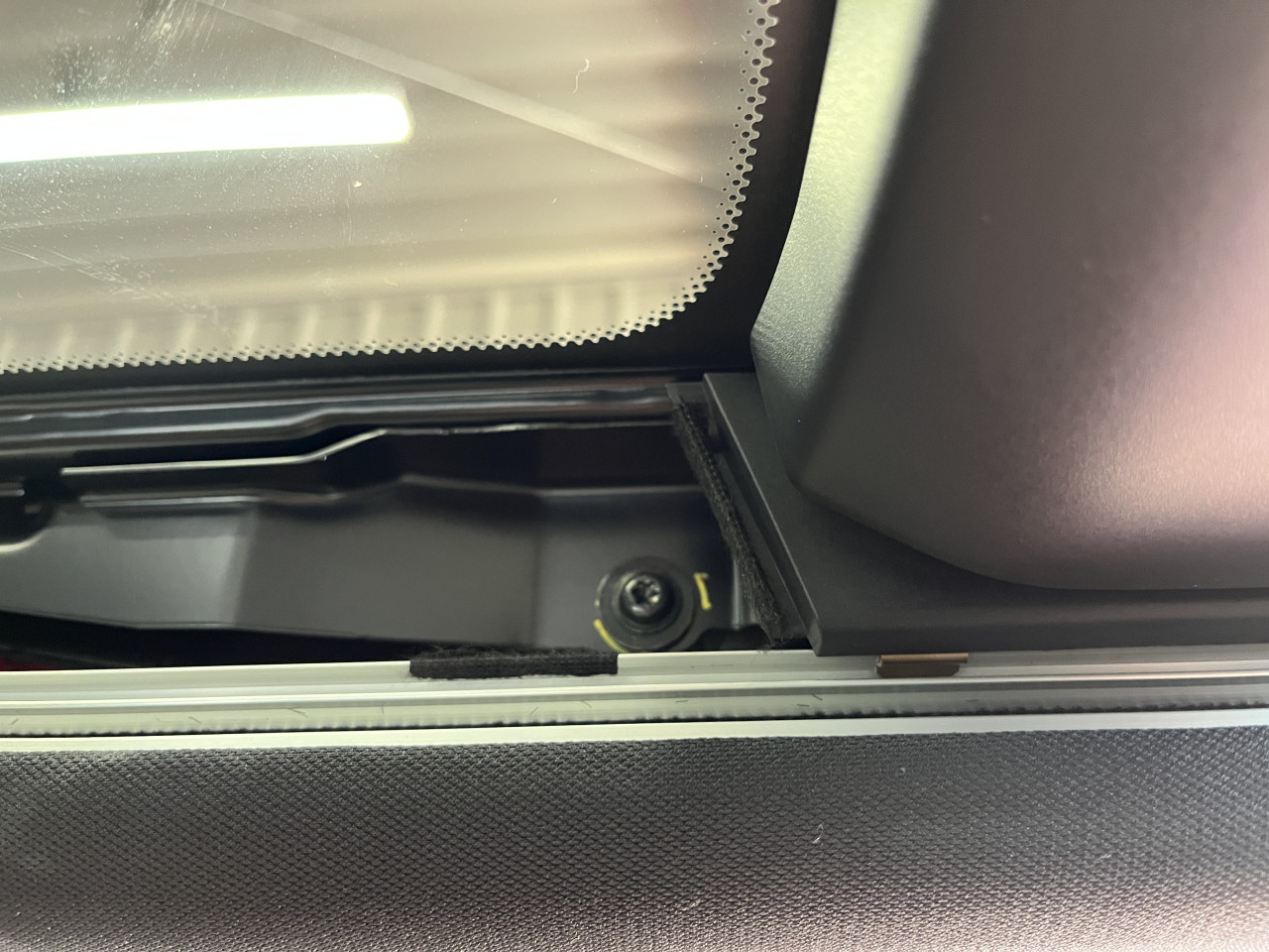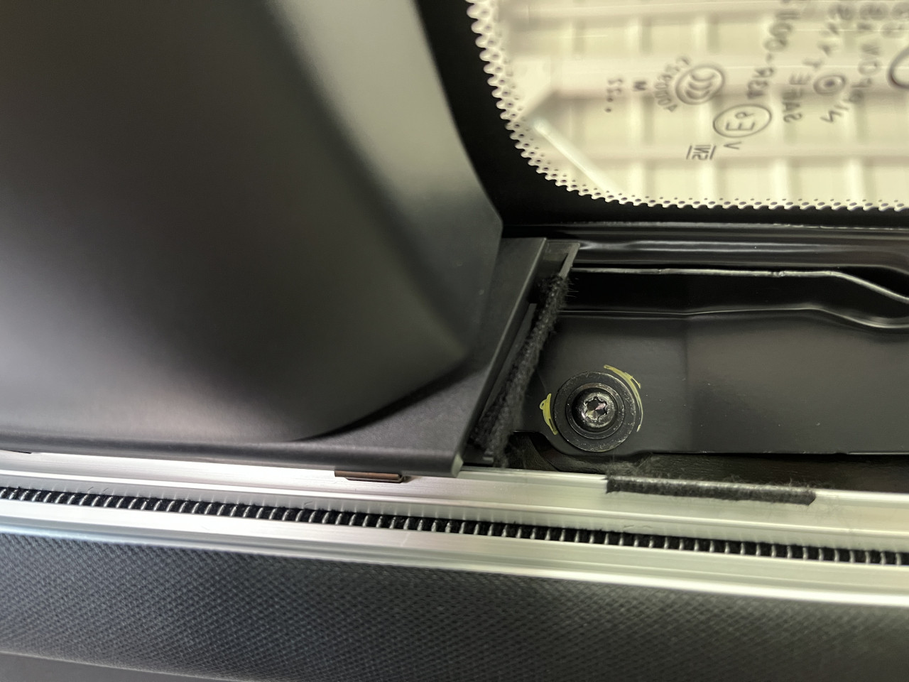 続いて反対側の助手席側からも全く同じ音が出ておりましたので、トリムを取り外して同様の対策を行います。