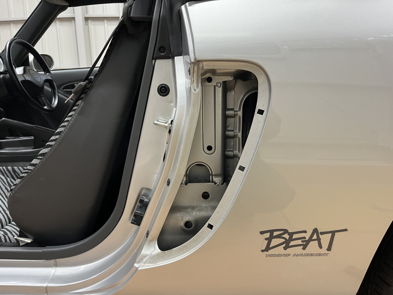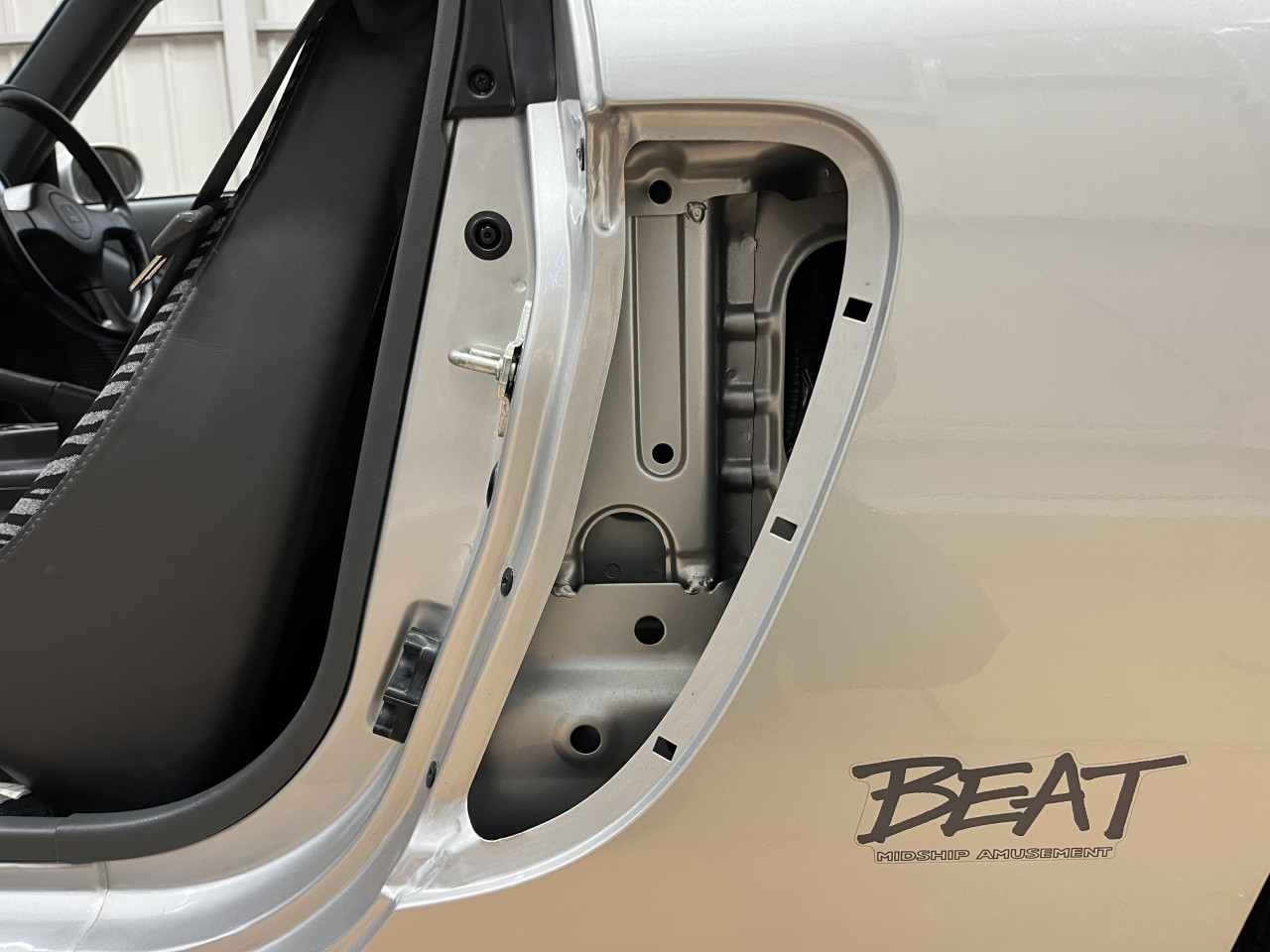 先にご紹介致しましたサイドシル外側からの確認において問題無かったとしても、BEATにおいては『外板を補修により綺麗にしているだけで内側のフレームは錆の腐食により穴が空いてしまっている』という可能性もある為、サイドシル内側の確認も重要です。