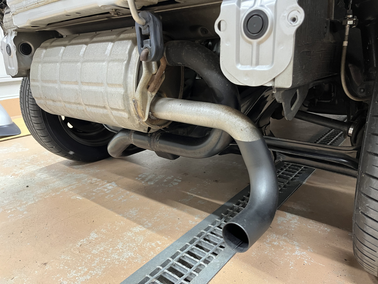 そして遮熱版とバンパーを取り付けましたら、リア廻りの作業は全て完了となります。