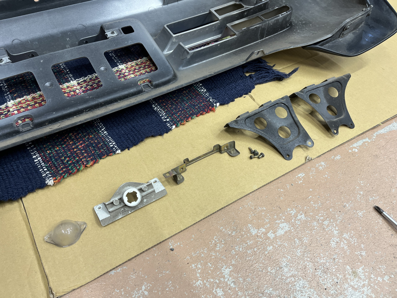 バンパー裏側はもちろんのこと、リアバンパーにはライセンスライトのホルダーやレンズ、ステーなどが装着されておりますので、全て取り外して一つ一つ清掃致します。