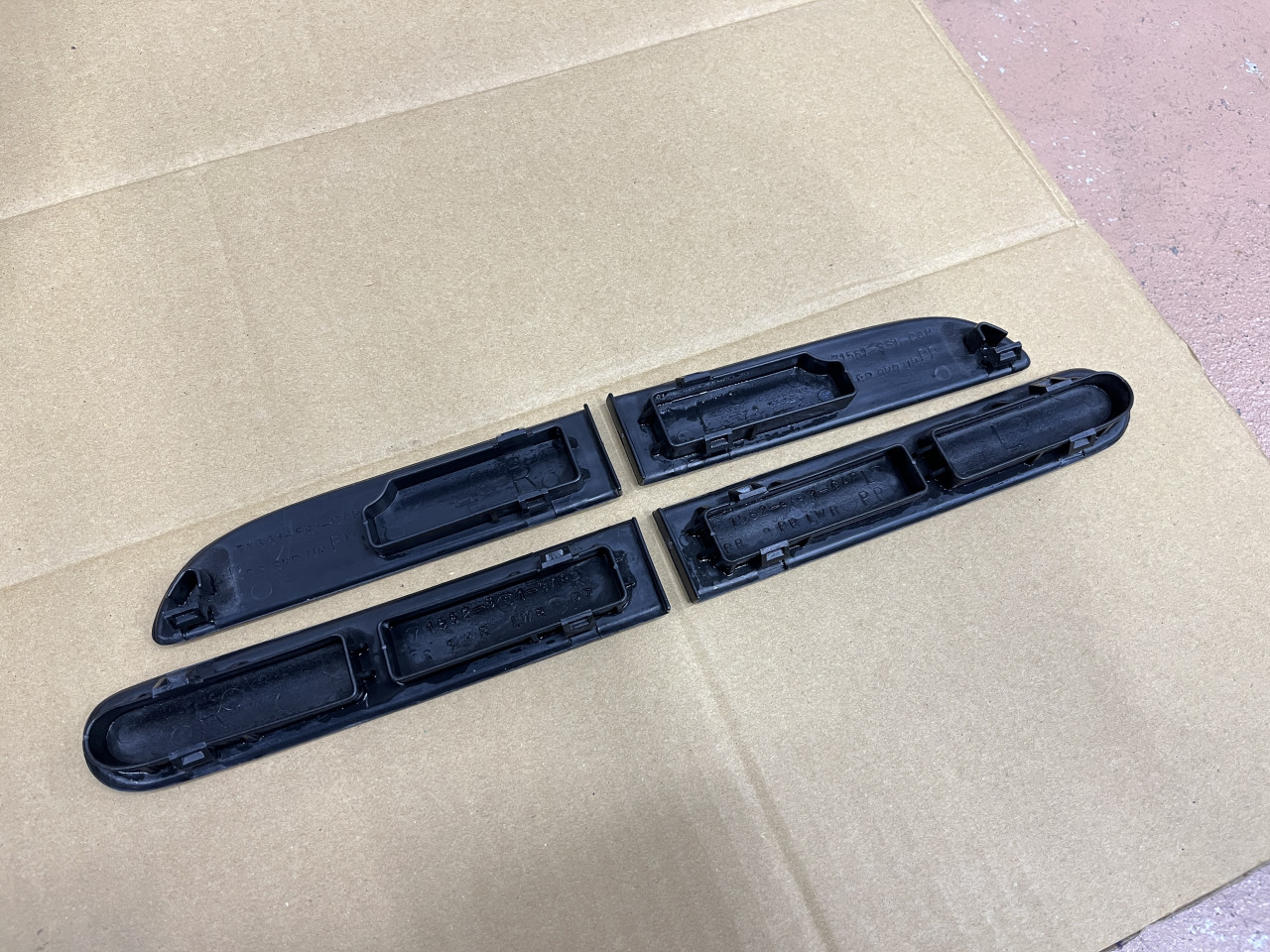 ボディ側の状態確認と清掃に続いては、バンパーと付属品、遮熱版、ガーニッシュの清掃に入ります。
