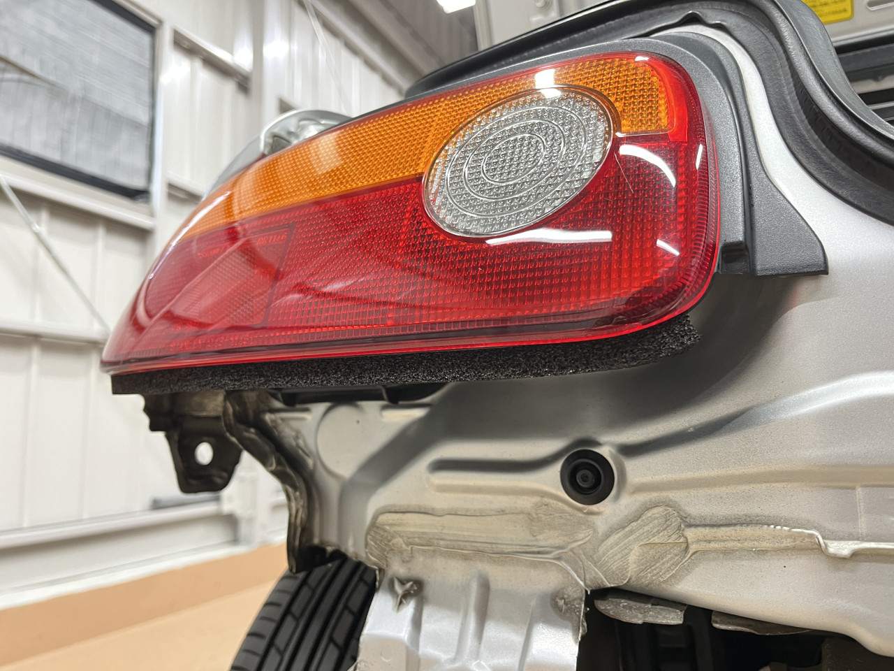 これにて状態確認作業と清掃作業は一通り完了ですので、最後にテールライト下にスポンジの貼り付けを行います。