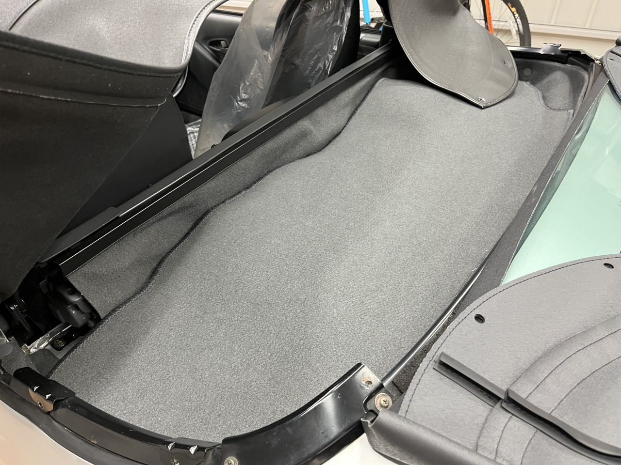 これにて、エンジンルーム内の確認及び清掃、そして各種調整作業は完了ですので、メンテナンスリッドを元に戻し、清掃したトランクマットを敷いて幌も元に戻せばエンジンルームにおける一連の作業は全て完了となります。