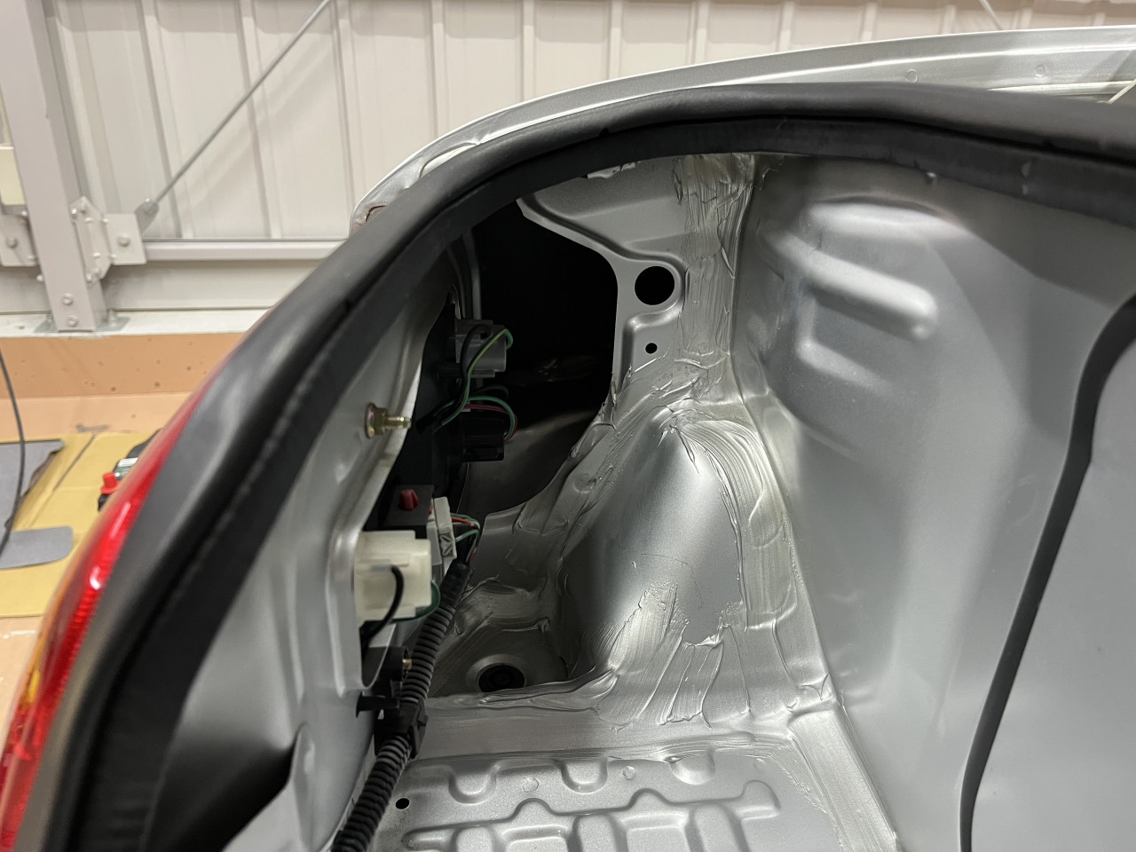 因みに、水に良く濡れてきた車両においては、このメンテナンスリッド固定部分の下側パネルに錆が進んでいる車両もありますが(トランク部分から入った水が溜まりやすいため)、本車両は全く錆が見られません。