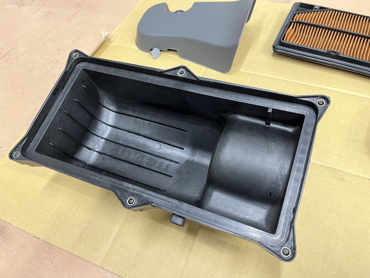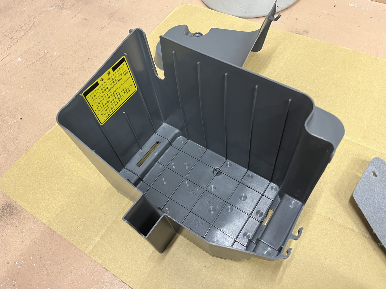 そして、各パーツとバッテリーを取り付けましたら、エアクリーナーケース内部におけるブローバイガスの状態確認及びトランクルーム内の清掃は完了となります。