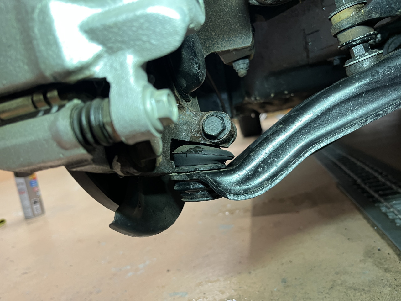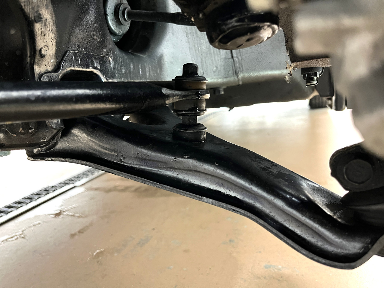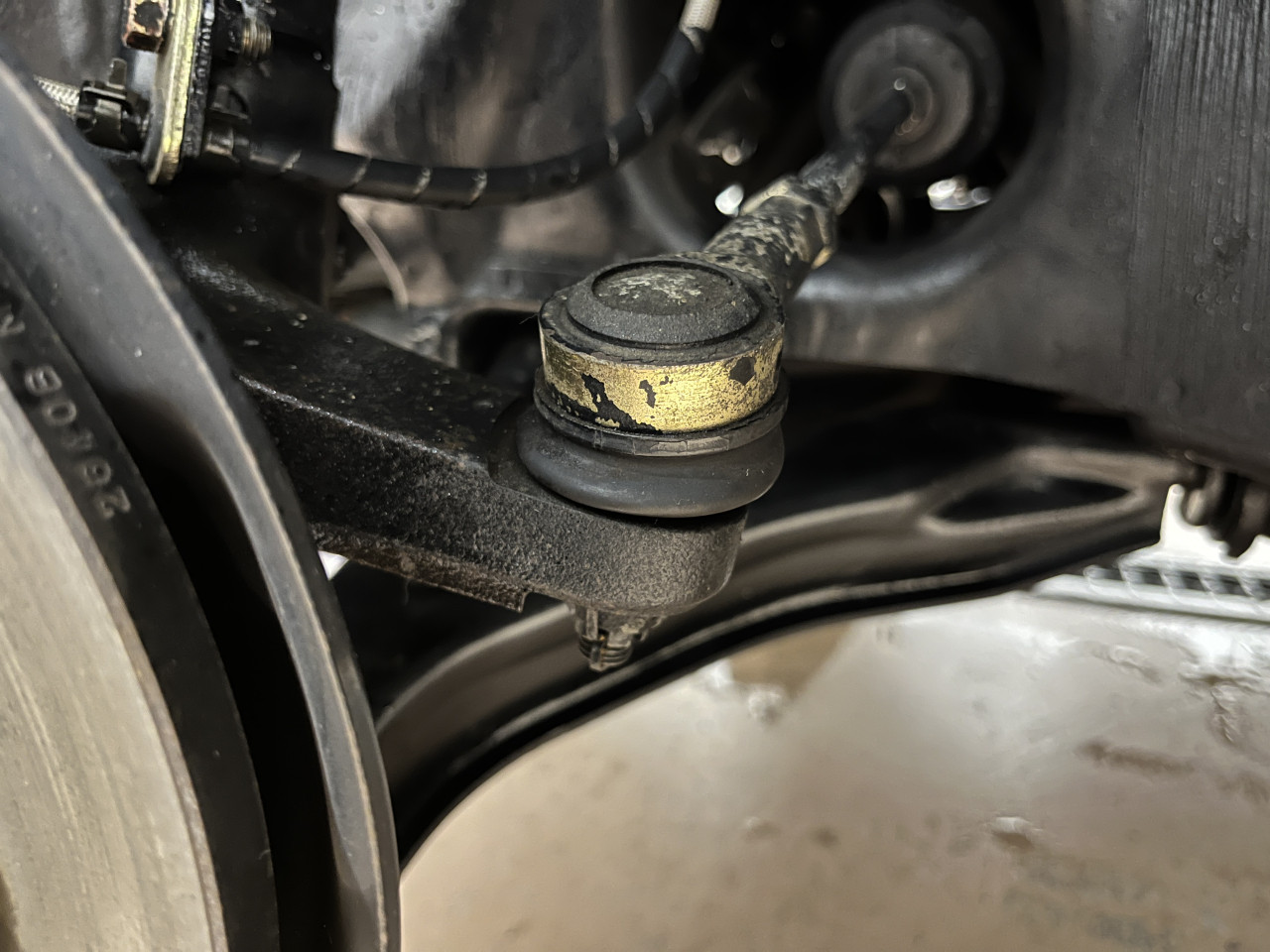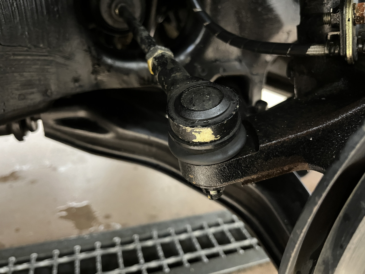 シャシーブラックが剥がれた部分から見えるタイロッドエンドの色からも、この車両の状態の良さが伺えます。
