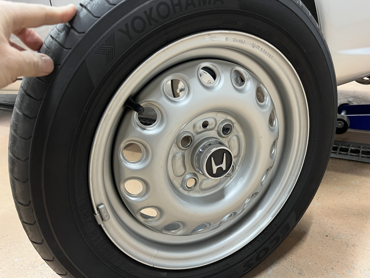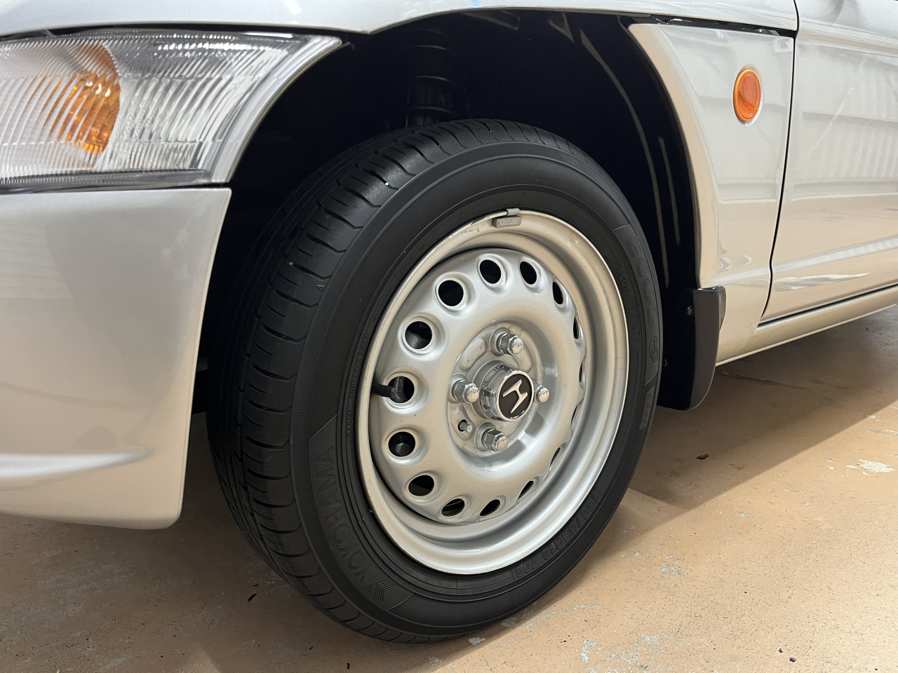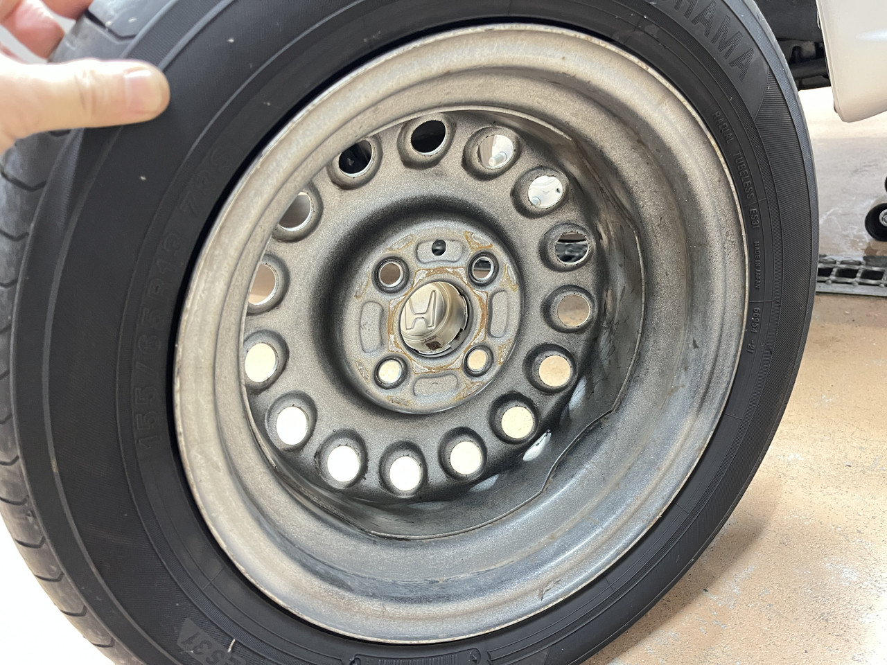 ホイールは純正の鉄ホイールとなりますが、ガリ傷や曲がりは見られず、錆もほとんど見られません。