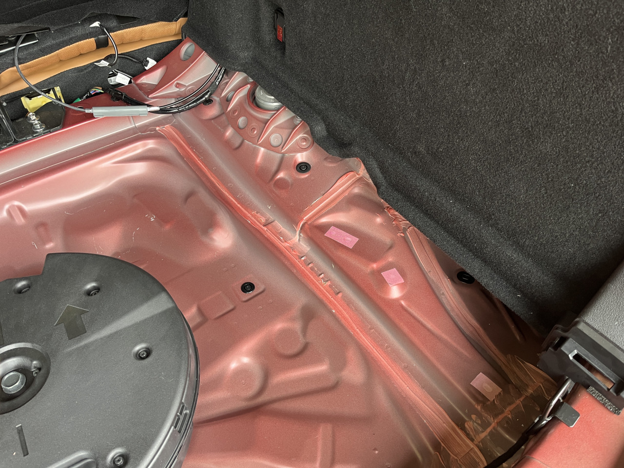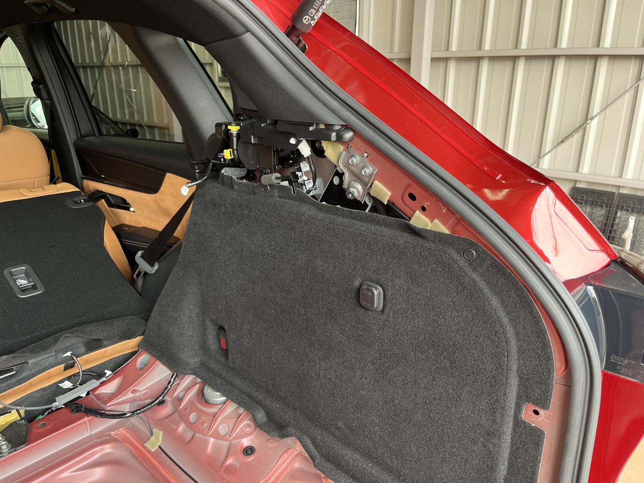 これも走行中の異音に繋がっていると考えられますので、今後は助手席側ラゲッジルームライニングを取りはずして、確認と対策を行います。