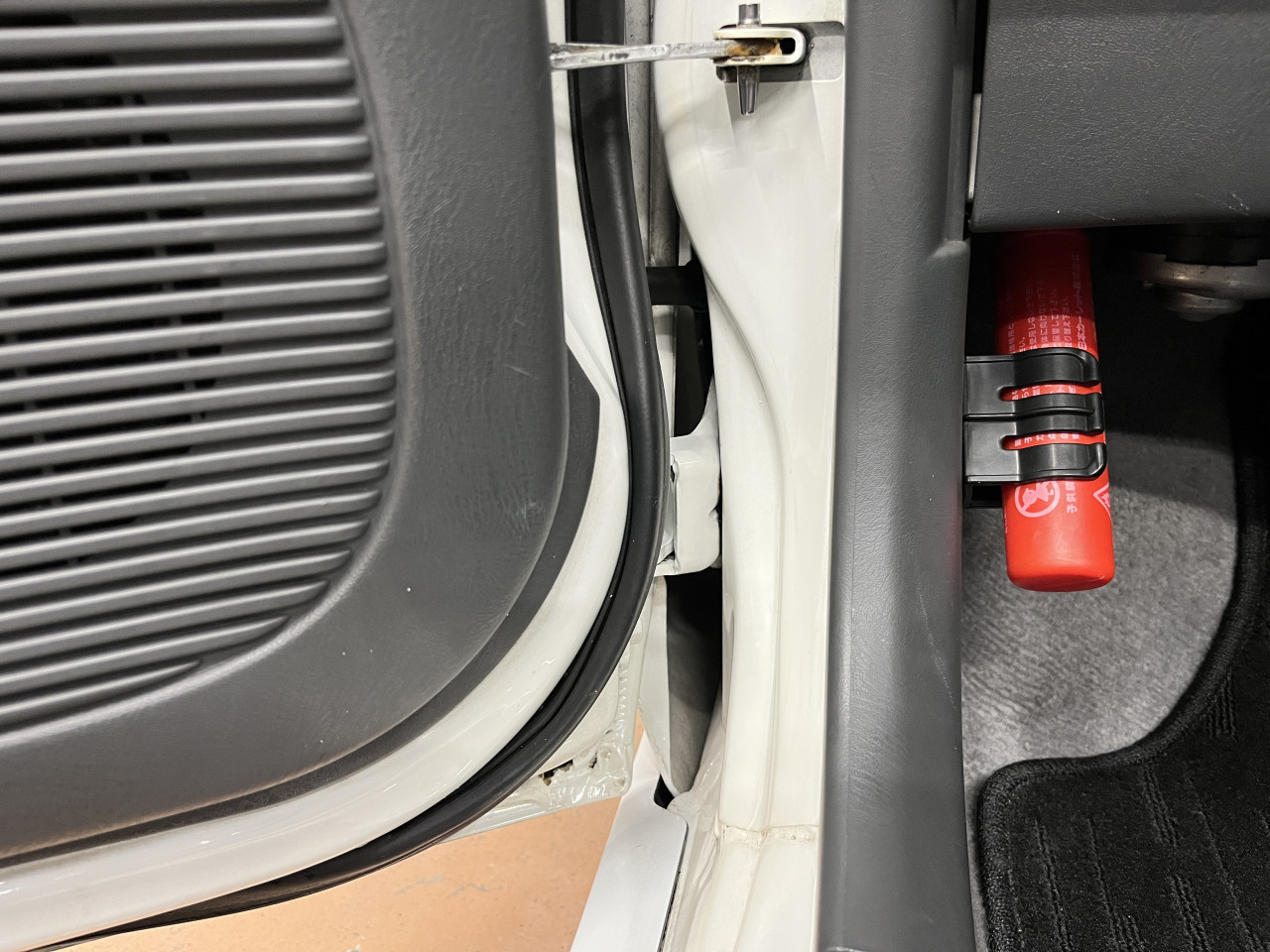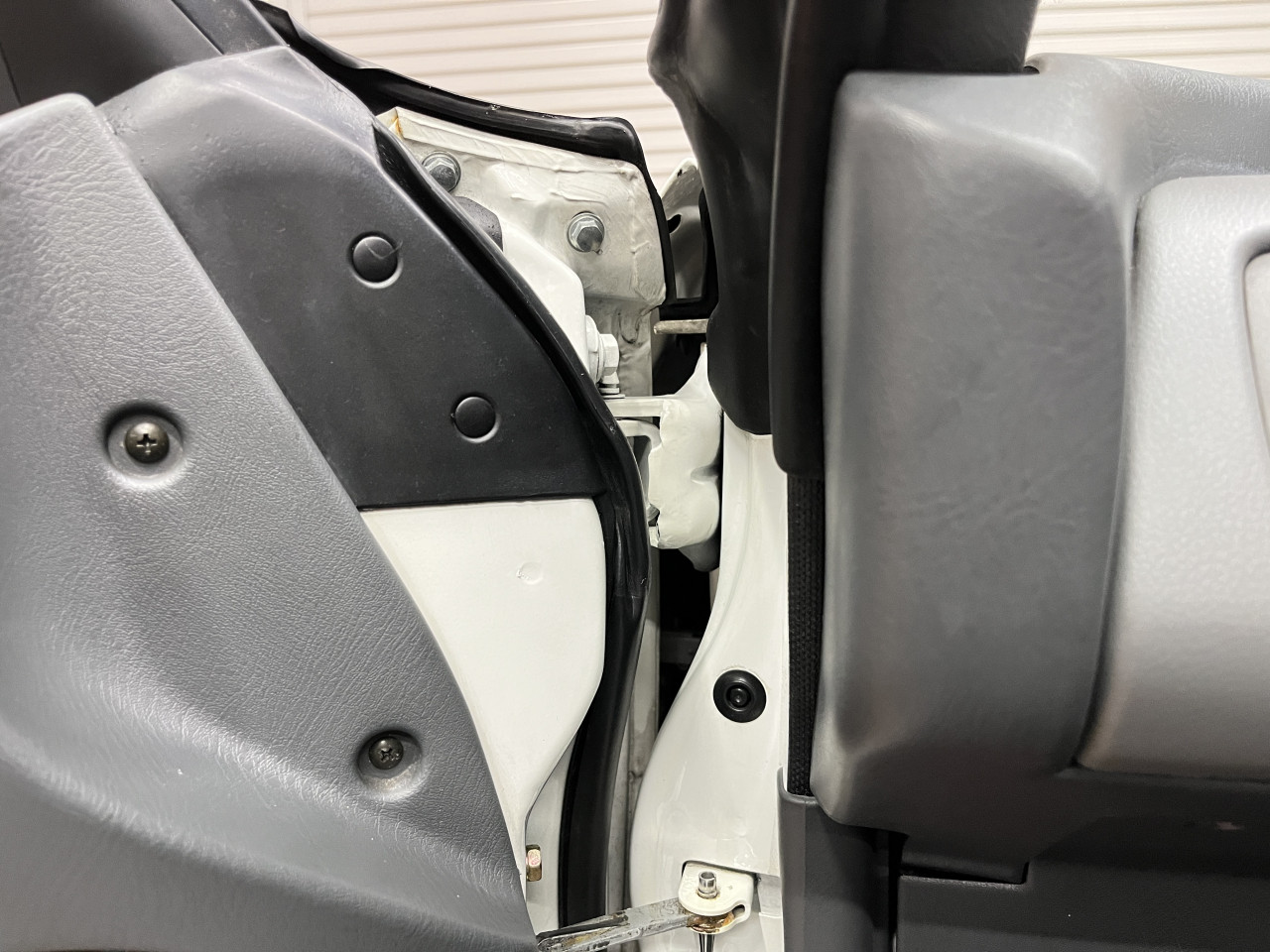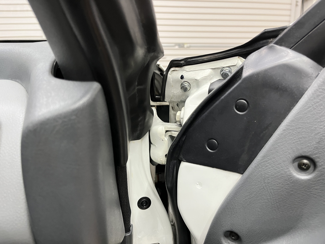外板に続いては、ドアのヒンジ部とサイドシルにかけて清掃と確認を行います。
