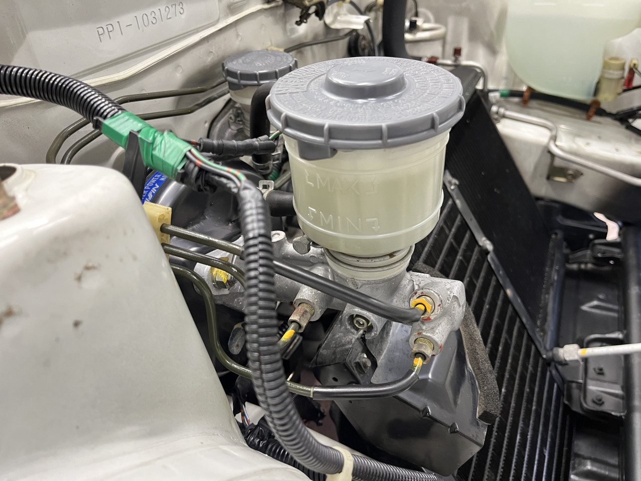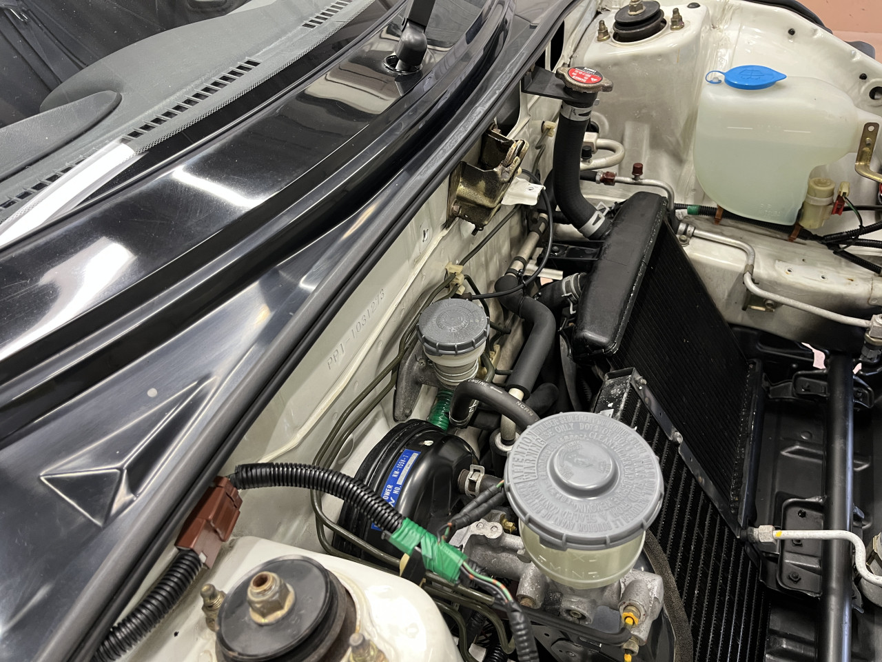 因みに、昨今フルードが漏れてしまっている車両も多いブレーキマスターシリンダー及びクラッチマスターシリンダーからは共に漏れや漏れ跡も見られません。