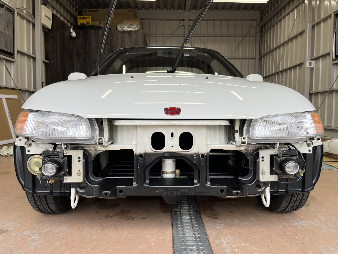 続いては、バンパーを外してフロント廻りボディーの状態確認及び各部清掃作業となりますが、作業の様子は次回にご紹介致します。