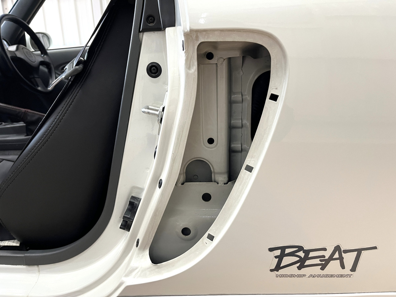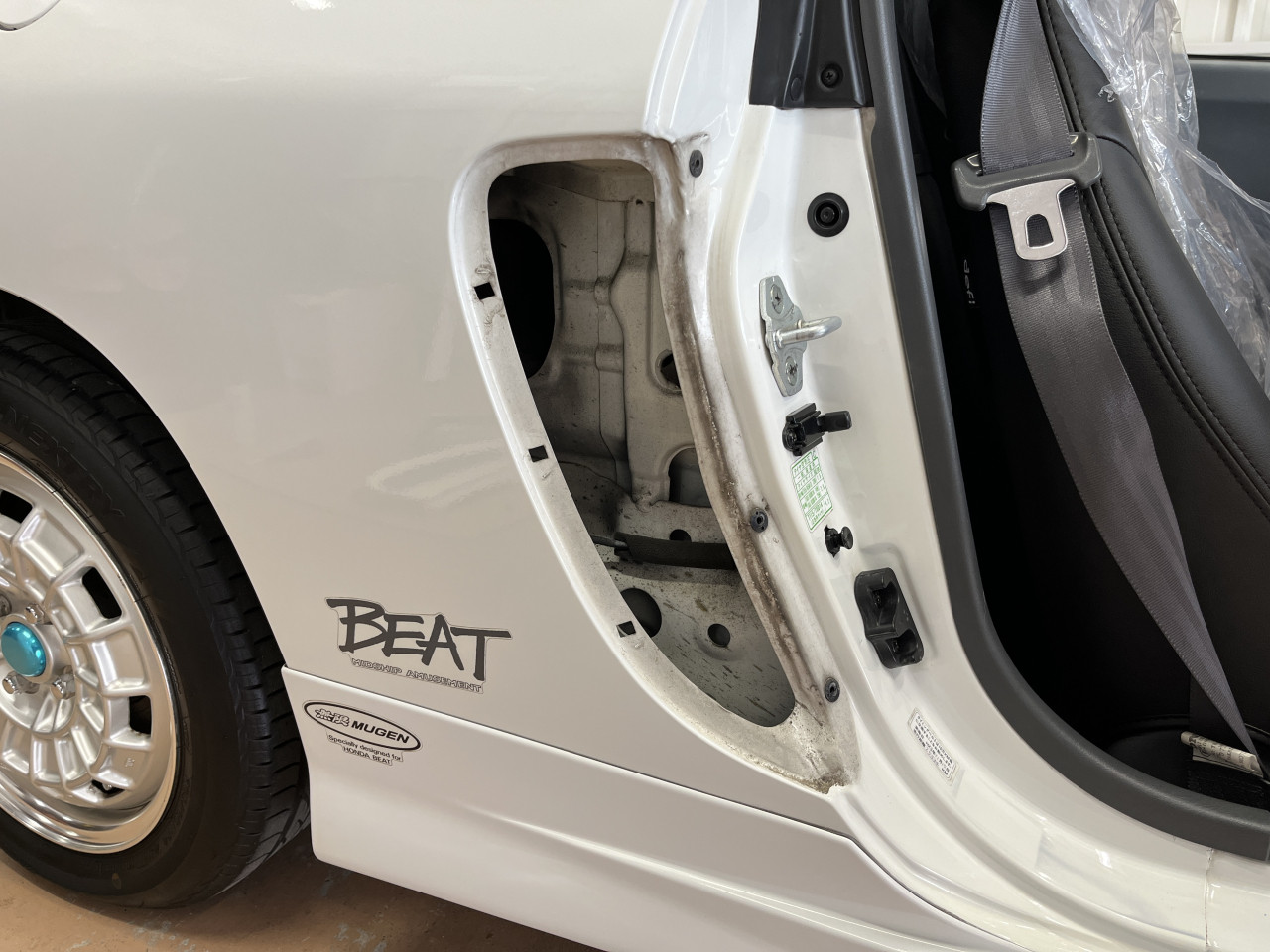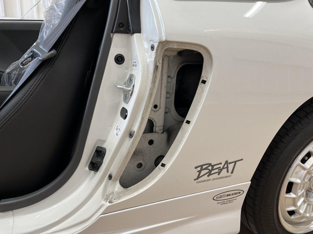 先にご紹介致しましたサイドシル外側からの確認において問題無かったとしても、BEATにおいては『外板を補修により綺麗にしているだけで内側のフレームは錆の腐食により穴が空いてしまっている』という可能性もある為、サイドシル内側の確認も重要です。