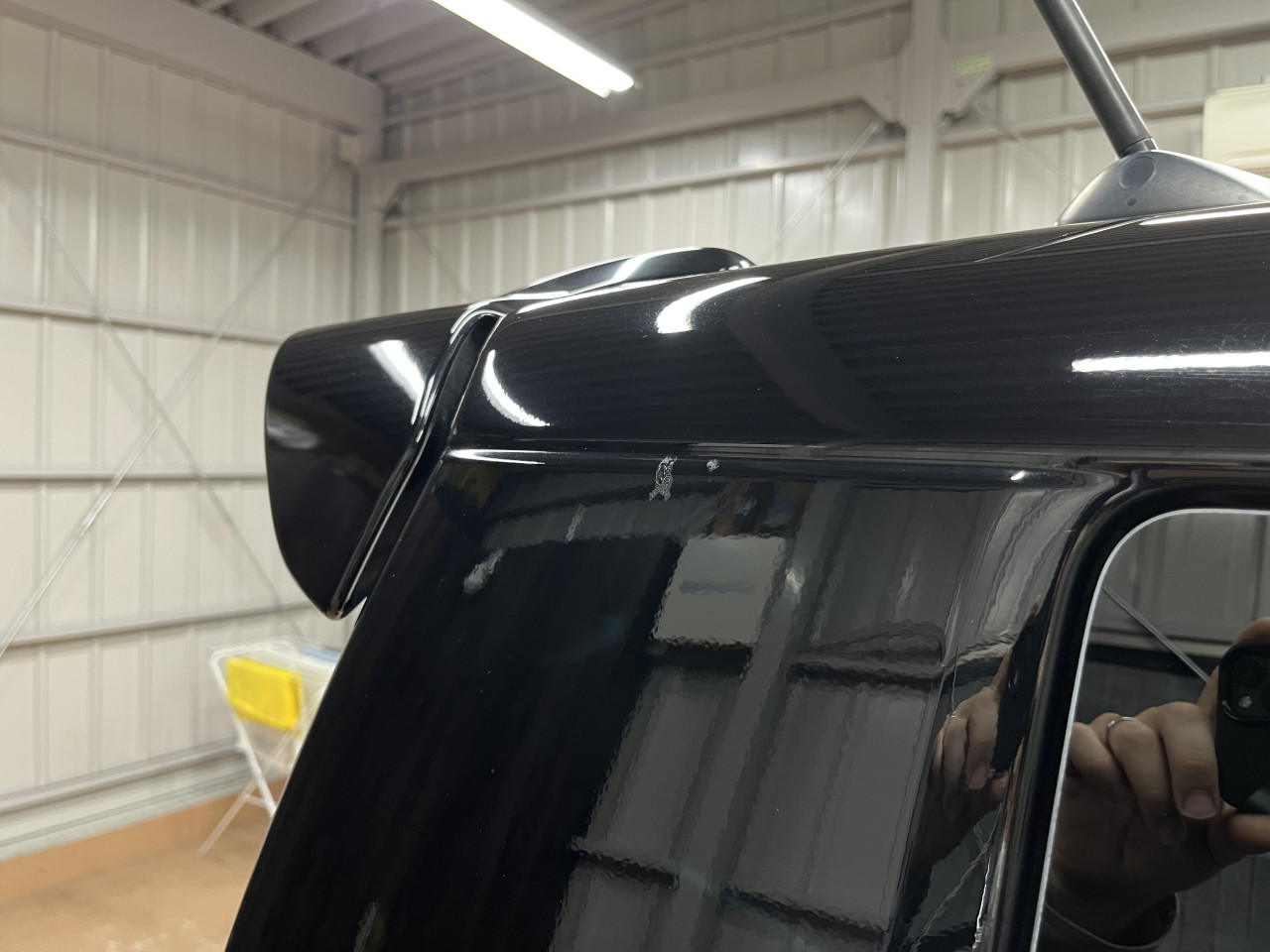 外装における数少ないマイナスポイントとしては、助手席側ドアミラーのタッチアップ跡と運転席側Cピラーの軽微なクリア劣化ぐらいです。